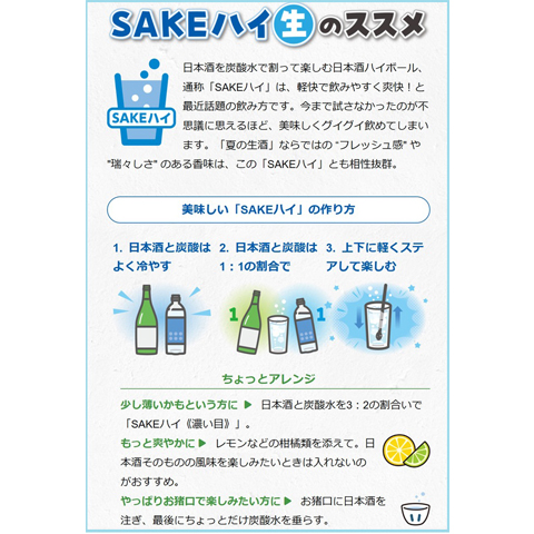 酒米の特徴を最大限に活かし、生酒特有のフレッシュな香味。爽快なキレのある味わいと喉越しが楽しめる、夏に相応しい超辛口が誕生しました。